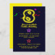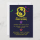 Convites de 8 de Aniversário de cor brilhante com neon "8", estrelas e confete.