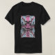Uma t-shirt gráfica impressionante, com um crânio cor-de-rosa arrojado, misturada com detalhes abstrato azuis e pretos, criando uma vibração rebelde e suja.