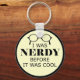 Engraçado e tolo Nerdy antes de ser Legal chaveiro. Este chaveiro divertido seria um presente perfeito para o seu nerd favorito! As cores de fundo podem ser alteradas para se adequarem às suas preferências. O seletor de cor de fundo está agora localizado na guia Editar.