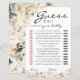 Inspired by soft ivory peonies in a quiet garden setting, this game card blends playful fun with elegant style. The delicate florals and classic typography keep the look refined while guests enjoy guessing who said what—mommy or daddy—during the baby shower.