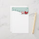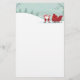 Estes artigos de papelaria bonitos da letra do Natal têm um design na parte superior que tem um fundo azul macio com lotes das árvores nas colinas nevado. Há uns lotes da neve que caem no fundo. À direita, há um Papai Noel adorável que está por seu trenó.