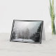 A fotografia bonita de uma paisagem preto e branco nevado faz o cartão perfeito do Natal. Um quadro preto e branco adiciona um toque agradável, e os gráficos dos flocos de neve brancos decoram o lado esquerdo da fotografia. Personalize o texto a suas necessidades.
