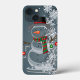 Um bonitão com um chapéu preto e um cachecol vermelho e verde se coloca contra um pano de fundo de neve.