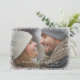 O design moderno apresenta um layout de foto sangrando o cheio com uma borda de neve e uma saudação clássica de Feliz Natal. O backer inclui um padrão e uma sala de distribuição diagonalmente sutis para incluir uma mensagem personalizada ou fotos adicionais.