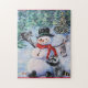 Parece que todos vieram se juntar à diversão de Férias com o boneco de neve. Quebra-cabeça para juntar a família. Imagem da minha arte original.