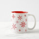 Única, desenhada à mão usando arte digital, esses grandes flocos de neve vermelhos se espalham ao redor de uma xícara branca com pequenos borrifados de neve no fundo. Vermelho é uma cor favorita para o Natal, e esta caneca vai fazer um belo presente para o Natal, ou a qualquer hora neste inverno!