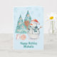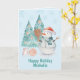 Cartão de saudação de Natal bonito e com aquarela, com homens de neve jogando piquete em um fundo verde pequeno. Texto personalizável