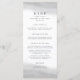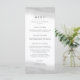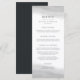 Chic e elegante menu de casamento preto e branco apresentam oito campos de texto editáveis com seus nomes e data de casamento no topo, acentuados por puras cinzas de aquarela de cinzas pálidas. Projetado para coordenar com a nossa coleção de casamento Mist. Use os campos modelo para adicionar as informações do menu e clique em "Personalizar" para reposicionar os elementos, se necessário.