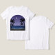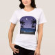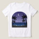 Minimalist silhouette illustration of a night beach with dark blue waves, purple sky, and silver moon overhead. Subtle palm tree silhouettes enhance the tropical feel. Perfect for Posters and T-Shirts, relaxing and calm vibes.