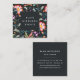 Cartões de visitas florais elegantes em forma quadrada única apresentam um padrão de fundo de flores coloridas brilhantemente e verde com seu nome ou nome de empresa e título exibido em branco em um quadrado preto-e-branco. Adicione as informações de contato do cheio ao lado inverso. Perfeito para planejadores de casamento, planejadores de eventos e outros profissionais de ocasião especial.