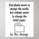 Prende esta poster no seu banheiro para uma boa gargalhada. Todos querem mudar o mundo, mas ninguém quer mudar o papel higiênico...