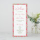 Encantem seus hóspedes com este romântico programa de casamento floral de peônias cor-de-rosa floral, com flores de peônia elegantes e caligrafia moderna. Esta design descreve o cronograma da sua cerimônia, festa de casamento e notas pessoais, perfeito para casamentos de primavera, verão ou jardim. Um adorável complemento para a sua suíte de papelaria floral, este programa adiciona um toque gracioso e coeso ao seu dia especial. Personalize facilmente com seus detalhes únicos de casamento.