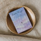 Espessura de 18 pt / Gramatura de 120 lb. Branco suave, textura delicada.