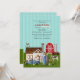 Um convite fazenda encantador, para uma criança mais velha com muitos detalhes, com o fazendeiro e sua esposa na fazenda.(Pixabay.com/en/barn-flowers-farm-farmer-pot-silo-158330/. Galo de Vecteezy - Freevetor.