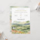 Este convite apresenta uma ilustração original de aquarela digital de uma cena ensolarada ambientada num glen com flores silvestres e uma adorável casa de campo.