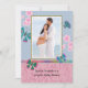 Em um jardim, as flores azuis e cor-de-rosa crescem e as borboletas abundam. Uma escolha excelente para um convite do chá de fraldas.
