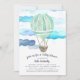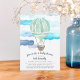 Celebre seu doce bebê no caminho com nosso convite de chá de fraldas neutro em hortas-aquáticas. Design apresenta uma ilustração do balão de ar quente na menta e no aqua, voando através de nuvens azuis fluffy, com os detalhes do evento abaixo na letra da cinza azul enfumaçado.