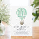 Celebre o seu doce bebê a caminho com este convite chico e simples de chá de fraldas em cores verdes de menta neutras do gênero. Design apresenta uma ilustração do balão de ar quente em mint e aqua, com os detalhes do evento abaixo em enfumaçado azul cinza.