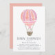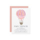 Celebre a sua menina a caminho com este convite chico e simples de chá de fraldas em aquarelas pastel moles. Design apresenta uma ilustração do balão de ar quente em cor-de-rosa e pêssego, com os detalhes do evento embaixo da cinza azul enfumaçado.