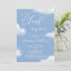 Celebrar a mãe a estar com um convite para o chá de fraldas na Nuvem 9 em azul mole. Esta elegante, mas minimalista design é perfeita para um chá de fraldas de menino moderno, revelação de gênero, ou partido de temas nuvens. Personalize o texto e as fontes para torná-lo seu, e explore nossa coleção de Chás de fraldas Azuis Cloud 9 correspondente para coordenar decoração, favores e suprimentos de partidos personalizados. Crie um dia mágico cheio de amor, alegria e momentos inesquecíveis!