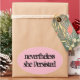 no entanto, ela persistiu no autocolante