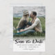 Esta única foto que salvou o cartão de data apresenta uma fonte de script em negrito. Fácil de personalizar com seu próprio texto e foto. Você pode alterar a cor no verso selecionando uma cor de fundo diferente de sua escolha.