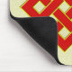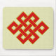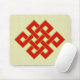 Este mousepad caracteriza um nó infinito vermelho, um dos oito símbolos auspiciosos do budismo, em um fundo amarelo.