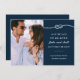 Este elegante Cartão Salvar Data tem um tema náutico. Apresenta um design de nó náutico no topo e uma fotografia do casal num quadro branco. Este cartão é perfeito para um casamento de destino, um casamento na frente do oceano ou um casamento na praia. O fundo azul do marinho adiciona um toque clássico.