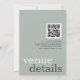 No Último Código QR, Anúncio e Convite para Festa de noivado de marfim. Um design tipográfico moderno, com Finalmente em grande tipografia girada e à direita no topo, em marfim com cinza para a letra "s" num fundo de verde macio. A cor do plano de fundo pode ser alterada em cada lado se você desejar por meio de Personalizar mais. Esta versão do convite é destinada às partes em mente que se realizam em um hotel ou restaurante (ou qualquer local com um site), substituem o código QR no verso por um código QR no seu website para tornar conveniente que os convidados encontrem instruções, etc. Você pode criar códigos QR gratuitamente on-line. Procure "Criador de código QR" e muitas opções surgem para criar gratuitamente. Você também pode excluir o código QR e o texto na parte traseira, se não for necessário por meio de personalização adicional.