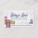 Cilindros e agulhas de costura, botões, esboços de fios e bobinas com fundo florescem neste cartão de visita de costureira para artesanatos e alterações.