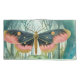 Uma delicada traça rosa e marrom contra o fundo de uma floresta misteriosa azul e verde.