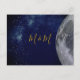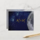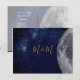 Um céu noturno com Douradas manchas astrais, dando a impressão de estrelas no céu, e a Lua sobre um fundo azul. Um tema moderno para um convite de casamento na moda. Altere facilmente as informações para o seu próprio design personalizado.
