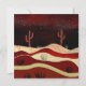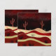 Cena de paisagem abstrato de um deserto com saguaro cactus, escova esfregada, colinas e estrelas em tons de vermelho, creme, bege e texturas ousadas.