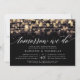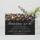 Nosso elegante janto de ensaio ou convites de festas de coquetel apresenta um fundo preto rico e cordas de luzes ouros com um efeito brilhante de bokeh. Amanhã apareceremos na tipografia do roteiro de caligrafia. Personalize com seu ensaio de cerimônia e ensaie detalhes de janto abaixo. Inclui espaço para a época do ensaio e endereço da igreja ou do local.