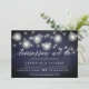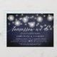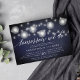 Nosso janto de ensaio elegante e rústico ou convites de festas de coquetel apresentam um fundo azul-da-meia-noite com texturas ricas de luzes brancas e lanternas luminosas de papel no topo, e "amanhã nós o fazemos" na tipografia do roteiro de caligrafia. Personalize com seu ensaio de cerimônia e ensaie detalhes de janto abaixo. Inclui espaço para a época do ensaio e endereço da igreja ou do local.