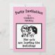 Convide a sua família e amigos para o seu dia especial com este divertido e único convite para o aniversário do desenho animado! Este cartão cor-de-rosa apresenta um desenho animado hilário que fará os seus convidados sorrirem e entusiasmá-los pela sua celebração. Pode ser personalizado para qualquer idade, então, não importa a sua idade, este convite captará perfeitamente a alegria e nostalgia do seu dia especial.