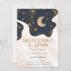 Projetado para nossa primeira viagem em torno da coleção Sun Birthday, este Cartão de Convite personalizável apresenta estrelas, planetas, céu noturno, faíscas de ouro. Feito principalmente em cores azul escuro e dourado com fontes decorativas. Itens correspondentes disponíveis.