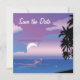 Tropical Night Ocean. Lindas palmeiras silhuetas no primeiro plano, um céu azul e roxo com a lua de cheio sobre o oceano. .