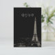 Belo RSVP com uma vista noturna da Torre Eiffel e as luzes de Paris contra um fundo preto. Personalize facilmente o texto no verso para o seu casamento ou evento! Convites combinando disponíveis.