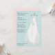 Na moda chá de panela com vestido de noiva com buquê de flores brancas em fundo azul macio e claro. Fácil de personalizar com os detalhes do evento. Convites vêm com envelopes e sua escolha de papel.