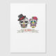 Uma impressão de noiva e noivo de casamento com caveira simbolizando uma parceria para sempre com imagens ousadas.
