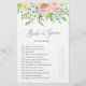 Belo jogo de Chá de panela floral com rosas, flores e verde pintados com cor pastel macia junto com "Noiva ou Groom" em um roteiro elegante e delicado. Abaixo estão questões para ver como os convidados conhecem bem a noiva e o noivo. O esquema de cores principal é coral com tom de pêssego. Este divertido Jogo do Chá de panela com um tema botânico é perfeito para uma celebração primavera.