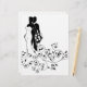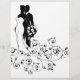 Uma noiva e um casal de noiva na silhueta, a noiva em um vestido branco de noiva segurando um buquê floral de flores com um design de padrão floral abstrato