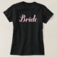 Camisa preta simples e elegante com design de texto "noiva" em rosa claro. Faz um ótimo presente de casamento!