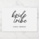 Camiseta feminina simples, moderna e elegante com citação "Bride Tribe" em fonte manuscrita em preto e branco num estilo moderno. Os nomes podem ser personalizados com os nomes das damas de honra. Pode ser usada para a noiva, damas de honra, meninas de flores ou a mãe da noiva. Os acessórios coordenados para a equipe da noiva funcionam bem para um chá de panela, despedida de solteira, manhã do casamento ou brunch do dia seguinte ao casamento. É um presente personalizado atencioso para a comitiva da noiva.