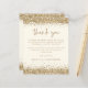Um valor para o alternativo do ORÇAMENTO em tamanho menor de 4,5 x 5,6" de semirbrilho de 110 lbs, que é de espessura semelhante a um cartão postal (no entanto, não é adequado para uso como cartão postal). POR FAVOR, OBSERVE QUE HÁ UM convite por folha. Dourada Festa de noivado De Creme Glitter Obrigado. As bordas da falsa brilha do ouro estão no topo e no fundo de cada lado, e Obrigado está em um script de escrita manual definido na coordenação do ouro. Personalize facilmente o resto do texto. Você também pode alterar as cores do texto e do plano de fundo por meio da opção personalizar mais, se desejar.