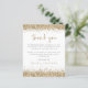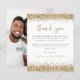 Um valor para o alternativo do ORÇAMENTO em tamanho menor de 4,5 x 5,6" de semirbrilho de 110 lbs, que é de espessura semelhante a um cartão postal (no entanto, não é adequado para uso como cartão postal). POR FAVOR, OBSERVE QUE HÁ UM convite por folha. Dourado Noivado De Foto Glitter Obrigado. As bordas da brilho falsa do ouro estão nas bordas superior e inferior e Obrigado por você está em um script de estilo de escrita manual definido na coordenação do ouro. Personalize facilmente o resto do texto. No verso, substitua a imagem de exemplo por uma favorita do seu partido.