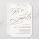 Este convite apresenta um brilho de ouro falso rosa e diz: "Estamos envolvidos.
