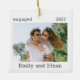 Noivado Mínimo de Foto Moderno Casal de Natal Ornamento de Férias. Modelo moderno elegante de foto do casal do noivado com texto simples para personalizar o nome do casal e o ano do noivado. Entre em contato comigo em truullc@gmail.com para obter produtos correspondentes ou assistência para fazer pedidos. feriado perfeito, festa de noivado ou presente de casamento para o casal recém-casado.