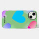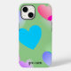 O design apresenta corações brilhantes coloridos em tons brilhantes de cores azul, vermelha, rosa, roxa e verde. Personalize este item ou compre como está. Para solicitações ou perguntas especiais, entre em contato com o artista em wafadahdalcreates@gmail.com. © Wafa Y. Dahdal - Todos os direitos reservados.